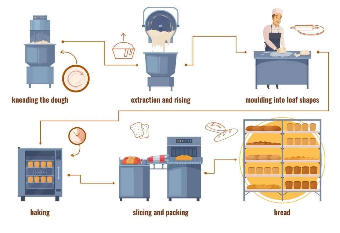 빵류 제조업은 신선하거나 냉동된 빵 및 생과자를 제조하는 활동을 말합니다. 빵은 강력분을 주원료로 물, 소금, 이스트 등을 넣어 반죽, 발효, 굽기 과정을 거쳐 만듭니다.