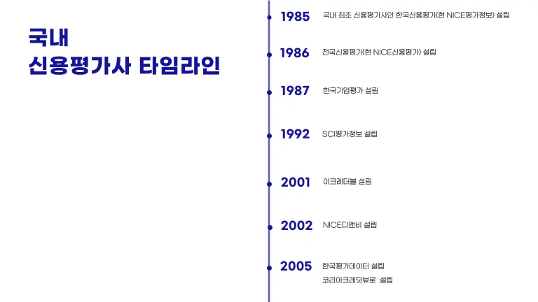 이로써 국내에는 3대 신용평가사가 활동하는 체제가 마련되었고, 자본시장에서 신용평가의 역할이 본격적으로 자리 잡게 되었습니다.