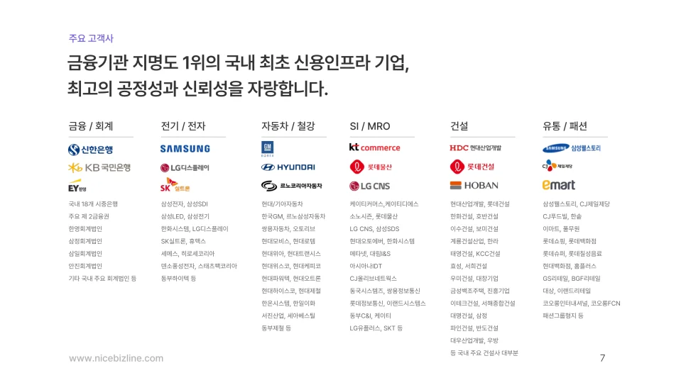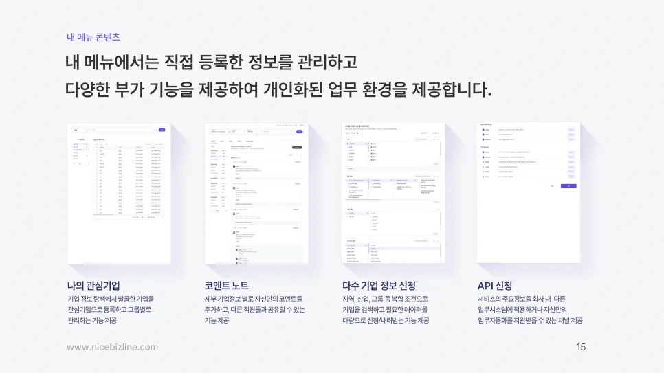 NICEBizLINE은 국내 대표 신용정보사 NICE평가정보가 제공하는 기업 맞춤형 정보 플랫폼입니다.