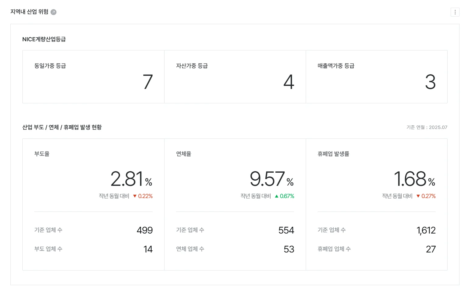 해당 산업의 부도 / 연체 / 휴폐업 발생률