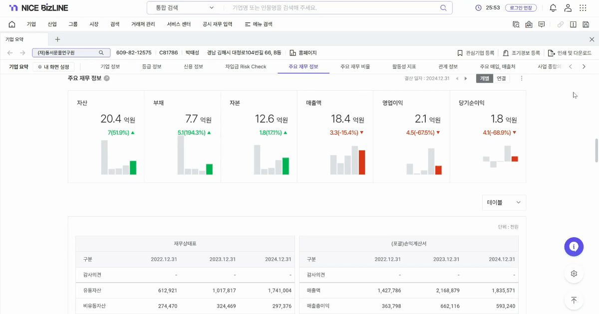 세상의 모든 기업 정보, 나이스비즈라인(NICEBizLINE)에서 우리 회사와 연결된 거래처가 어떤 유형의 법인인지, 투명하게 운영되고 있는지 한눈에 확인해 보세요.